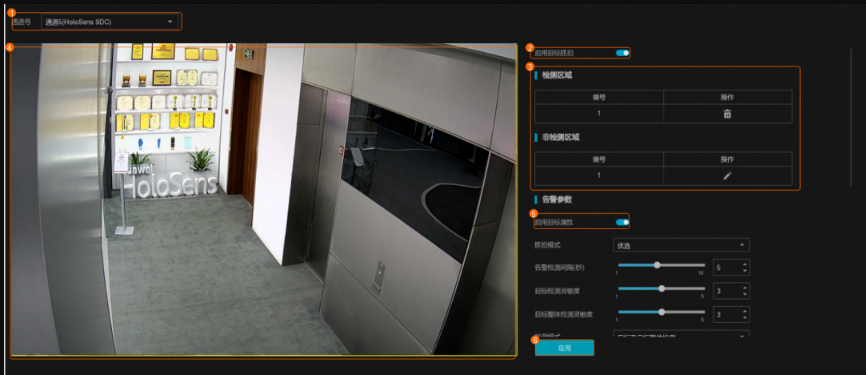 2. 繪制檢測區域和非檢測區域,并配置告警參數。